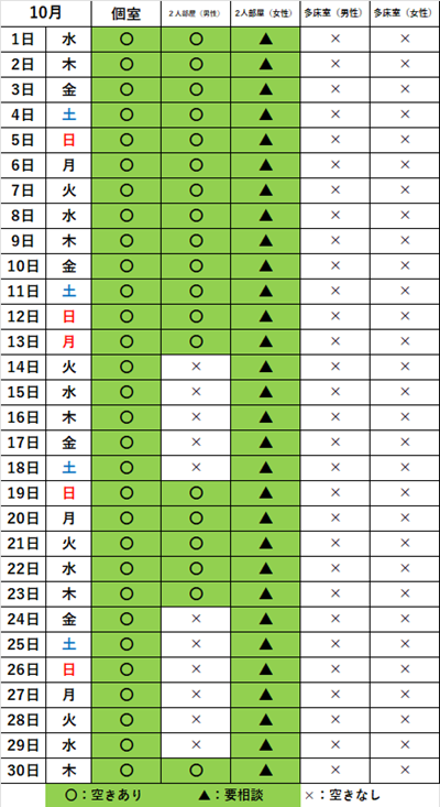 2025年10月のショートステイの空き状況について最新の情報をお知らせ致します。
